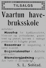 I februar 1921 dukker navnet Solstads Blomsterforretning opp under annonsene, og da var det etablert en blomsterforretningen nede i byen. Fra 1927 var navnet endret til Vaartun Blomsterhandel, og dette har i hovedtrekkene vært uendret siden da. ”Vårtun” ble et betydelig navn innenfor blomsterhandel i Steinkjer.